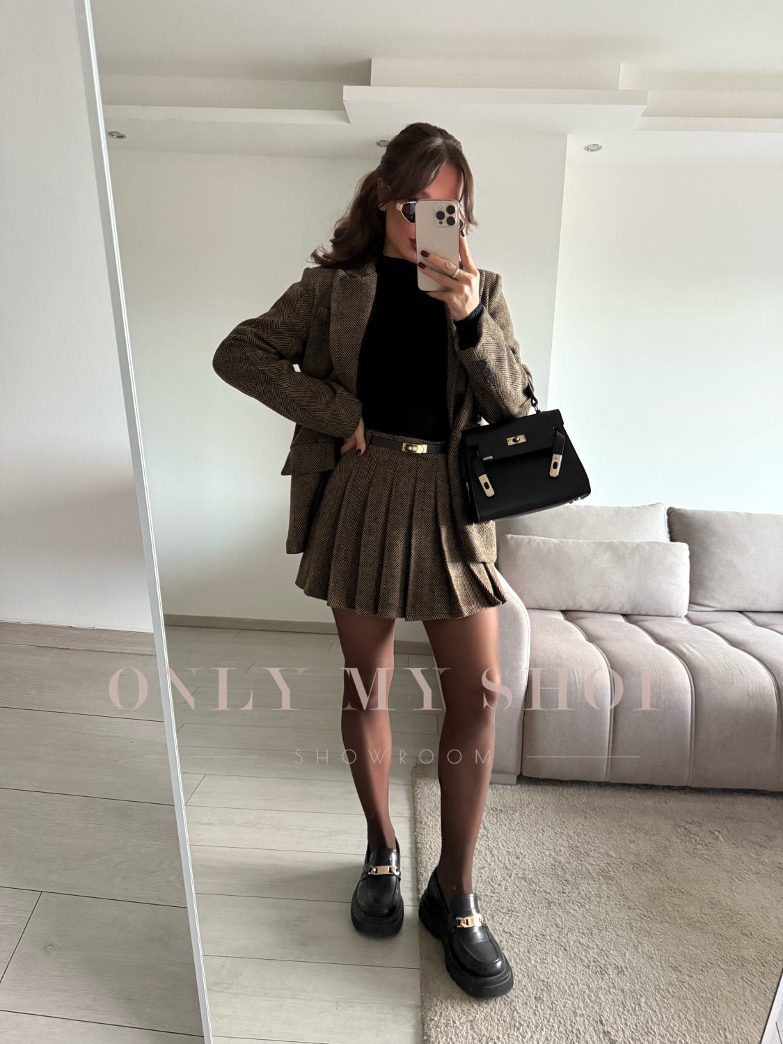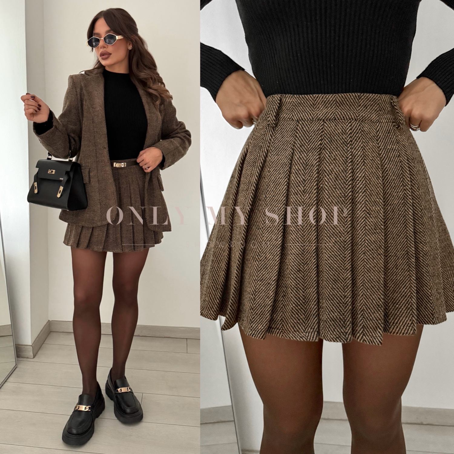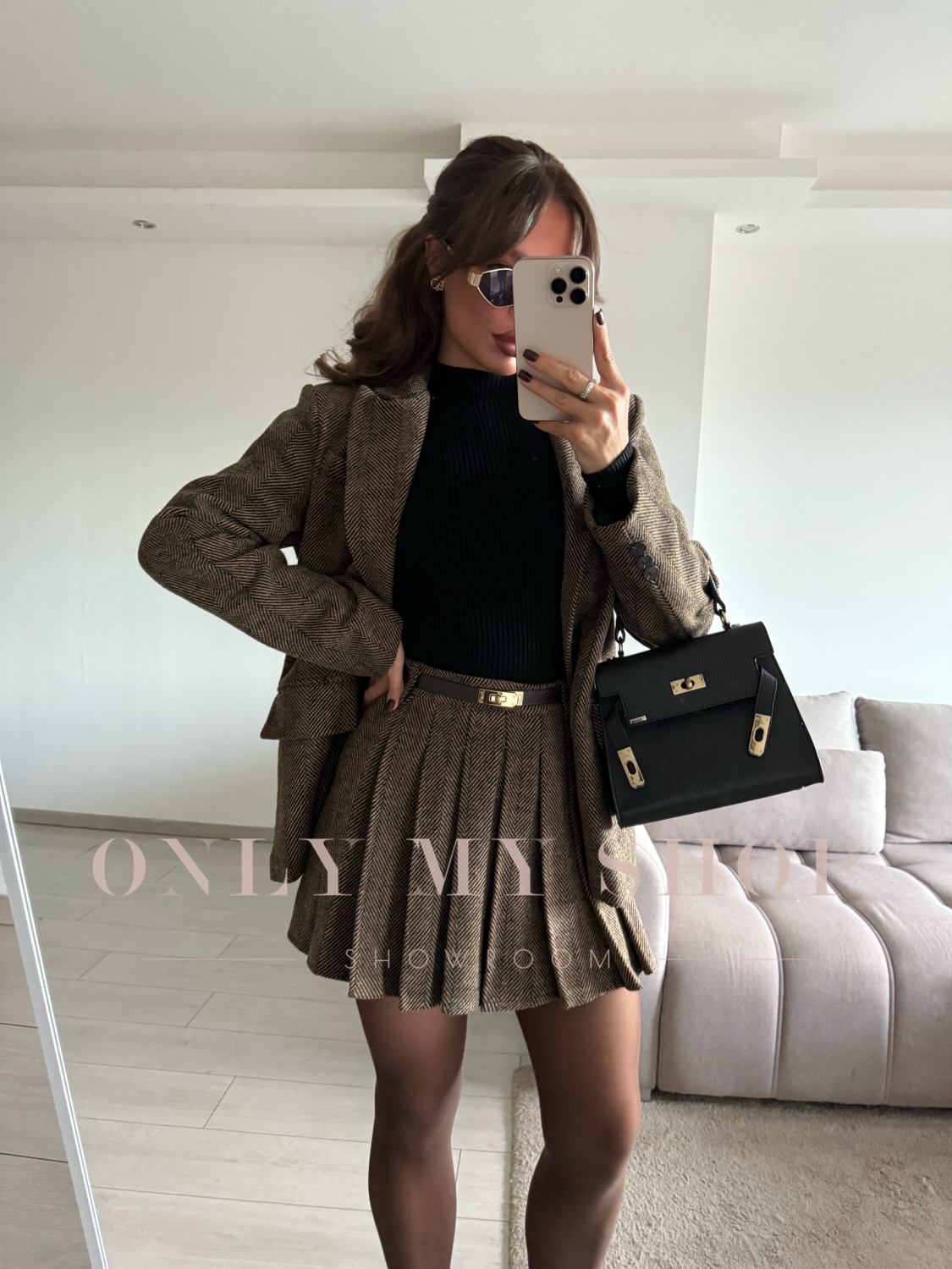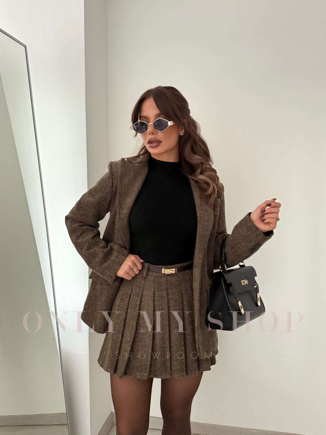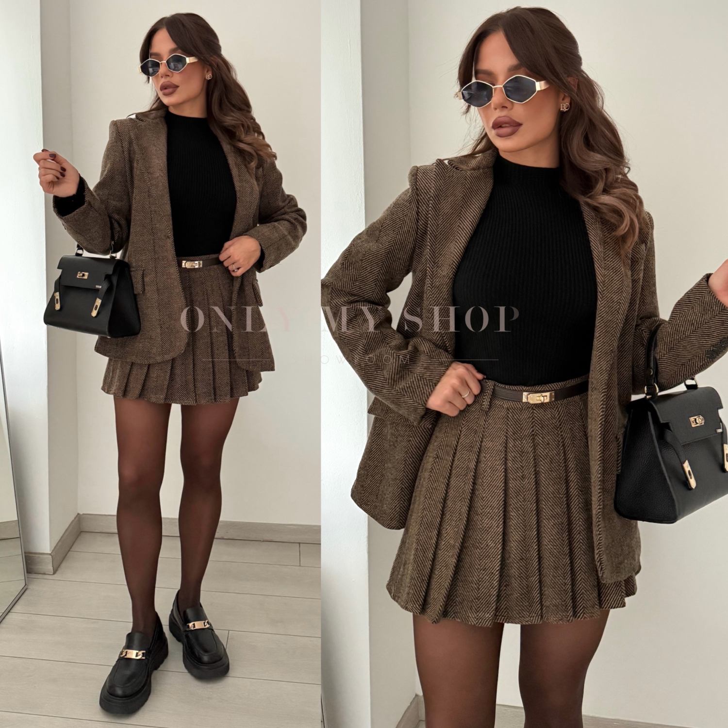 The ultimate chic combo for every occasion. A beautifully tailored tweed blazer, pleated mini skirt, and high-waisted belted shorts — three timeless pieces you can mix and match endlessly.