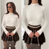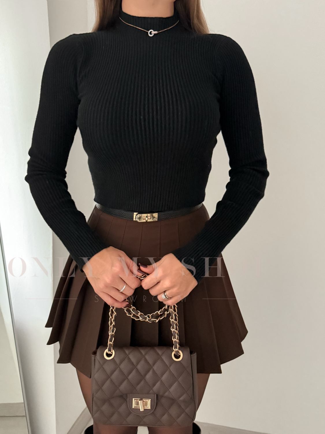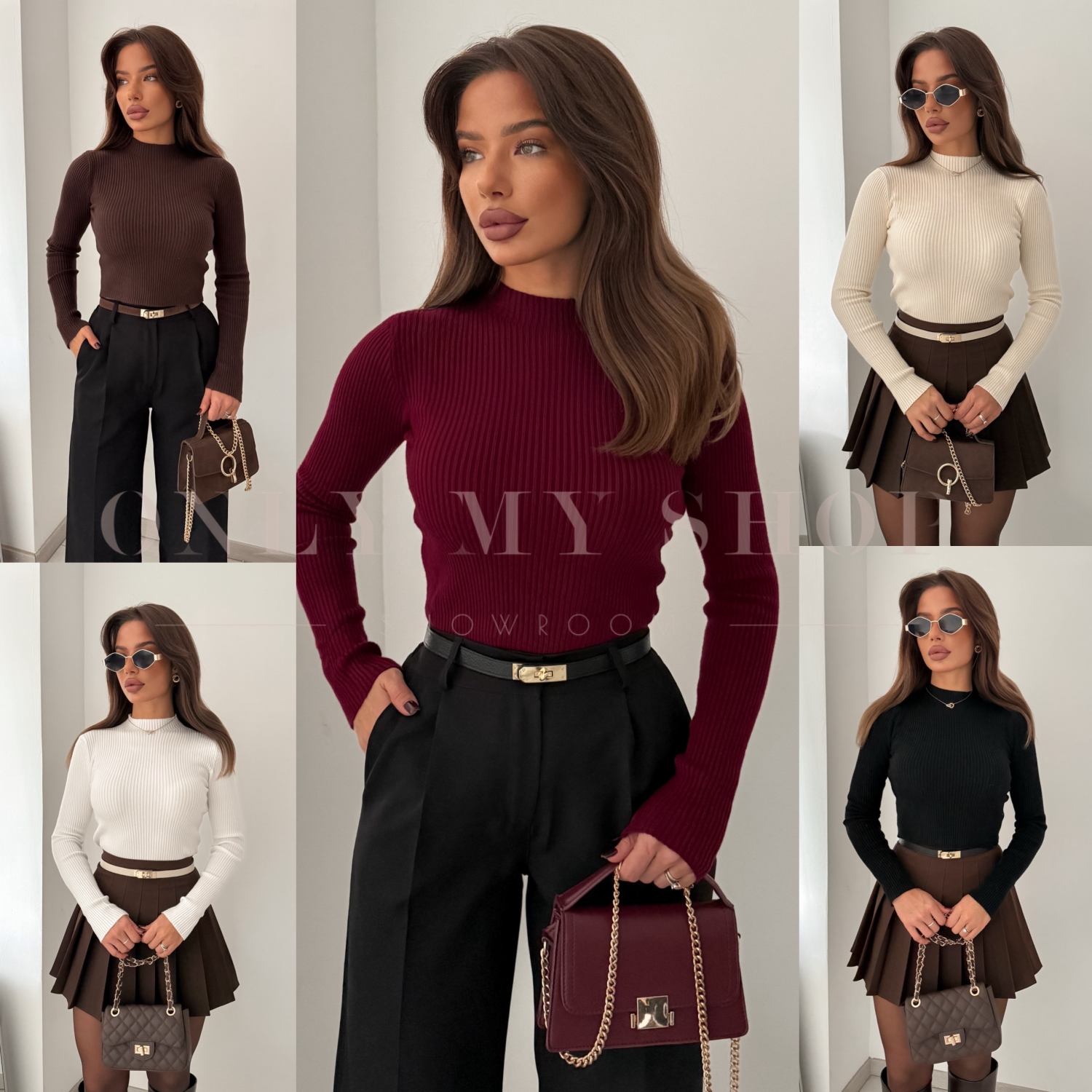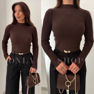Elegant and versatile turtleneck cropped top with long sleeves and a trendy elastic band along the entire length. Perfectly fits the body, accentuating your silhouette, and pairs well with jeans, skirts, or trousers. Soft and stretchy material ensures all-day comfort. Available in two stylish colours.