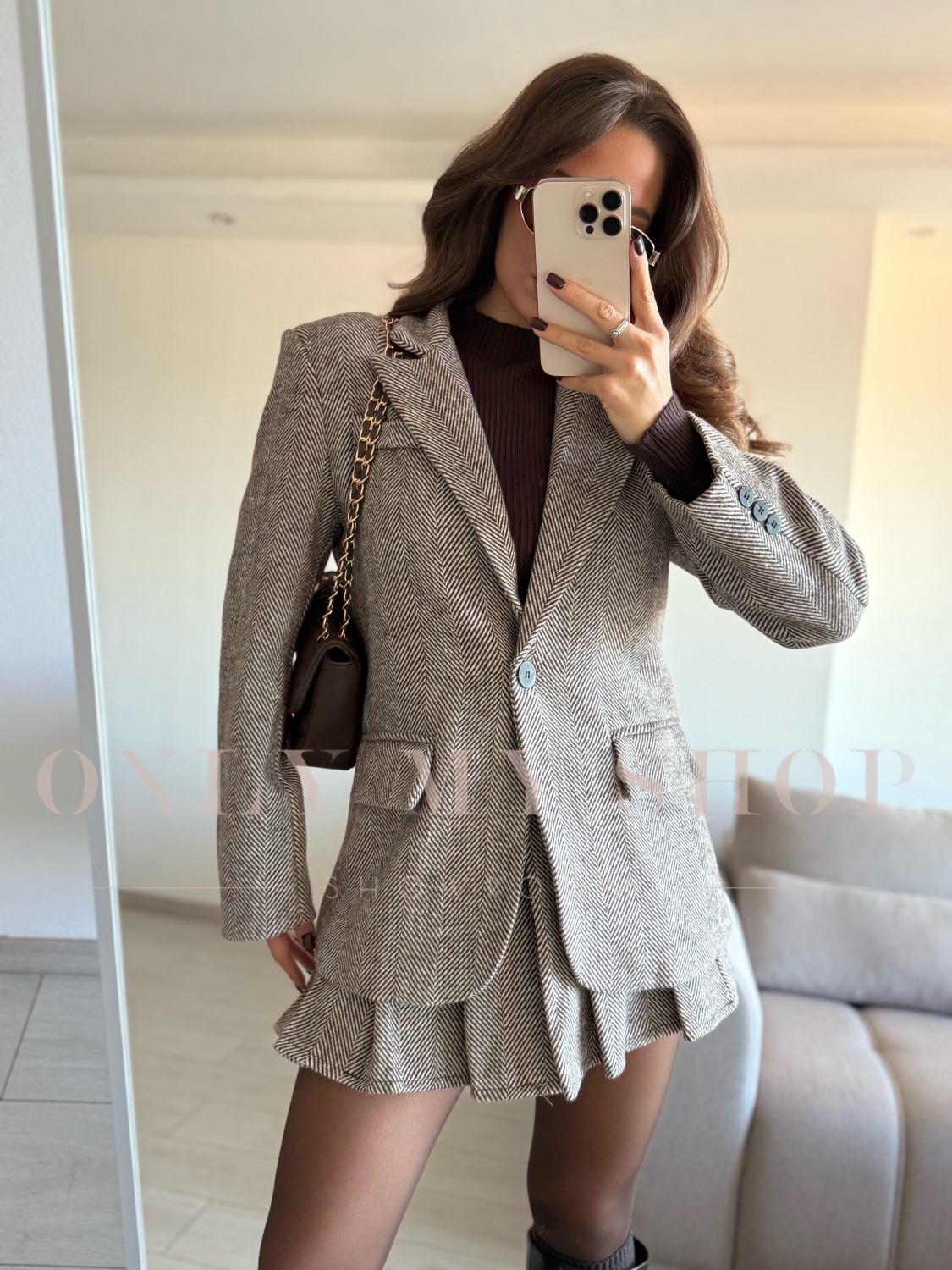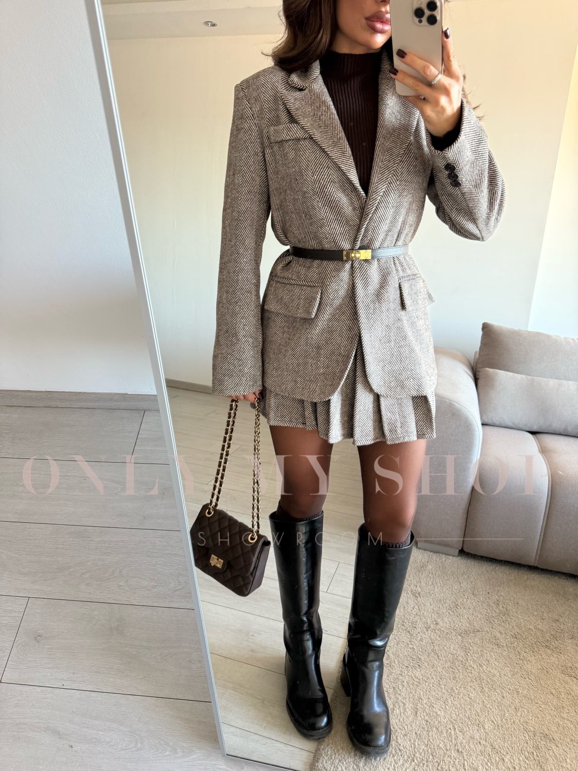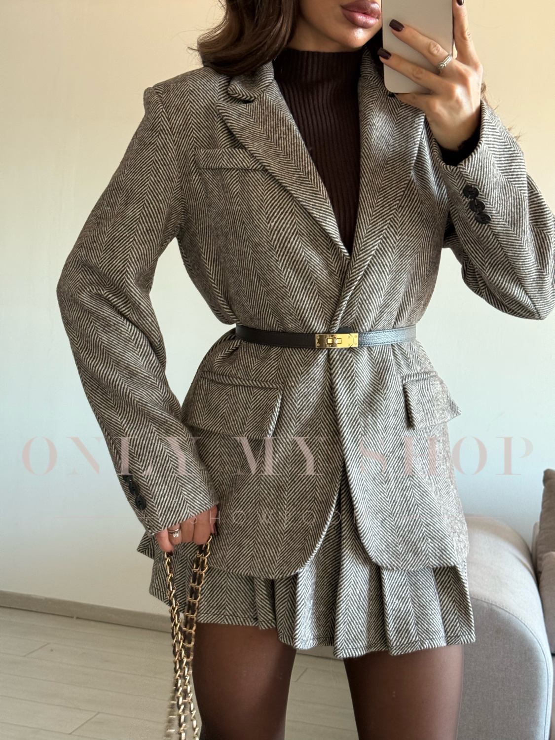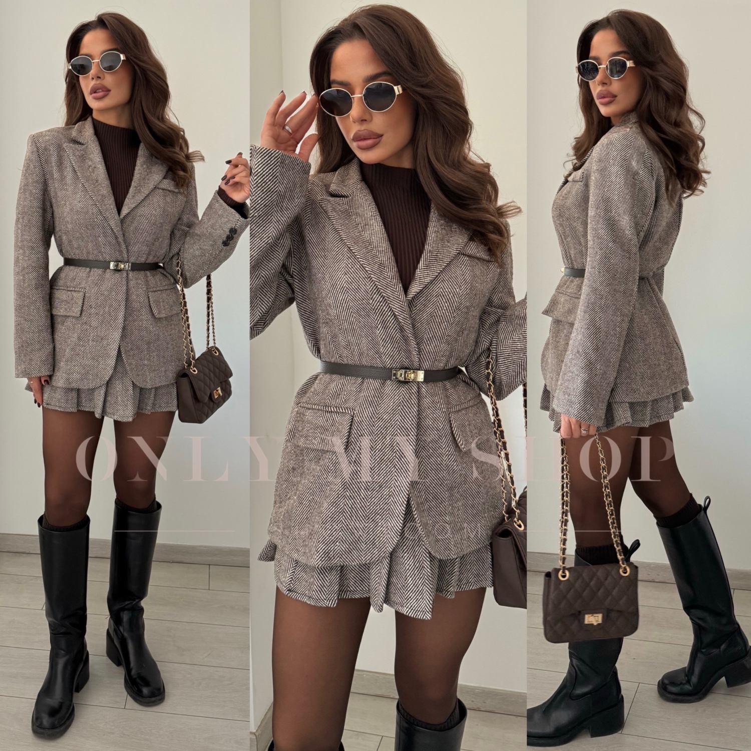 The ultimate chic combo for every occasion. A beautifully tailored tweed blazer, pleated mini skirt, and high-waisted belted shorts — three timeless pieces you can mix and match endlessly.