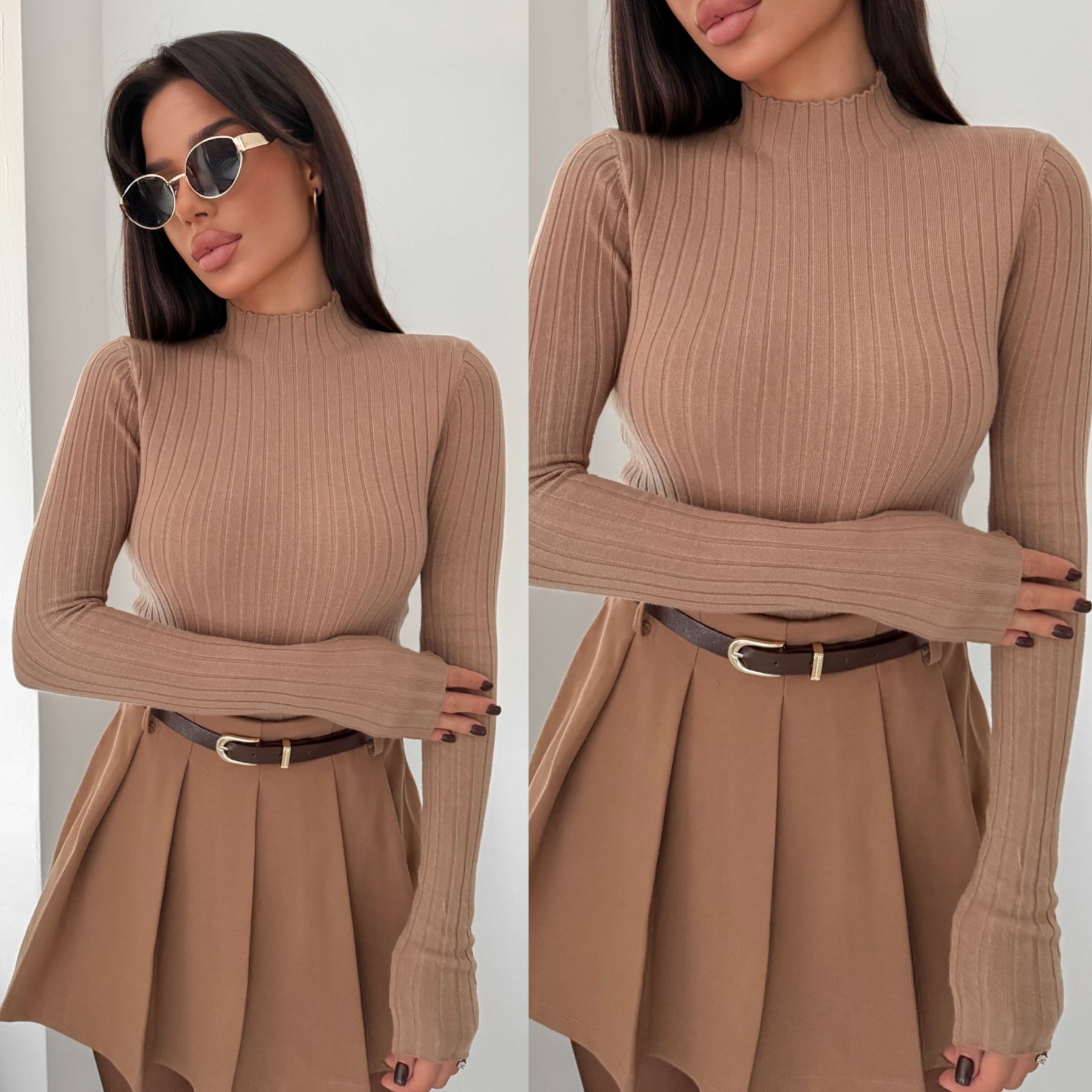 Elegáns és sokoldalú garbós crop top hosszú ujjakkal és divatos gumiszalaggal az egész hosszában. Tökéletesen illeszkedik az alakhoz, kiemelve a sziluettet, és remekül kombinálható farmerral, szoknyával vagy nadrággal. Puha és rugalmas anyaga egész napos kényelmet biztosít. Két stílusos színben elérhető.