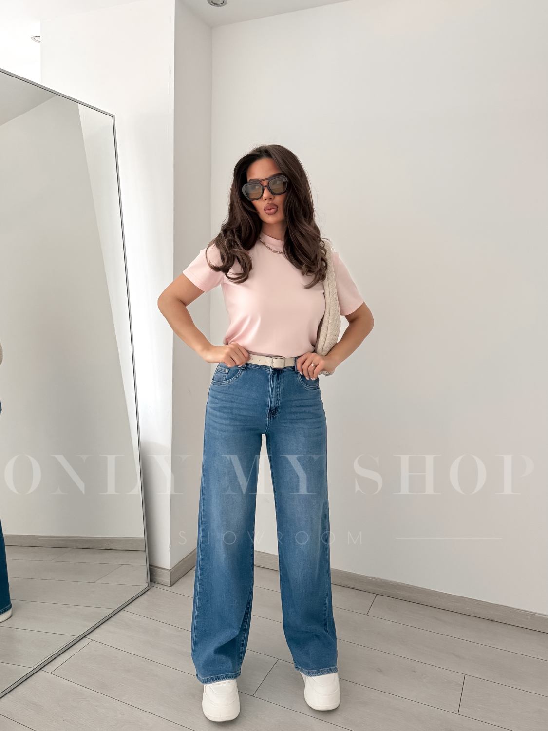 - A modell 165 cm magas, és S méretet visel.
